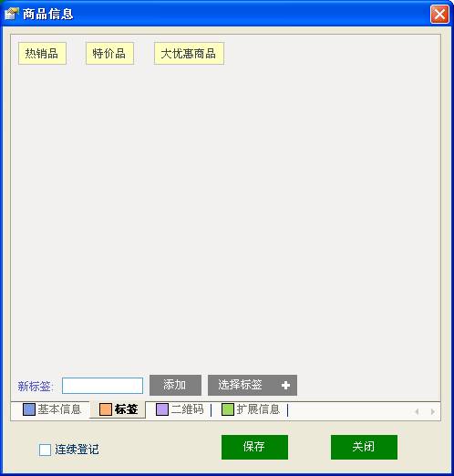 标签:此功能是为了更灵活的记录商品的信息而设置,我们可以预置标签,也可以随时添加新的标签,以此来把商品分类管理。