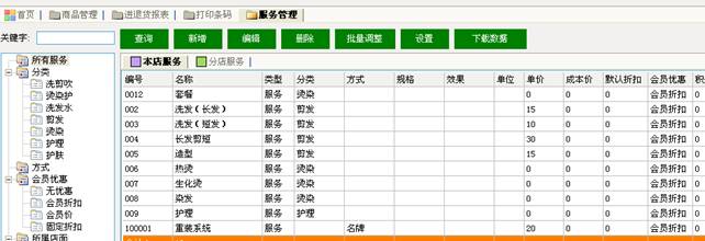 商品和服务项目是要根据不同的店面的经营项目来设置,鉴于每个店面都不同,软件中不集成默认的商品和服务项目,各门店在安装好软件后,可以自己设置,具体的设置和使用方法,请按下面的介绍操作。