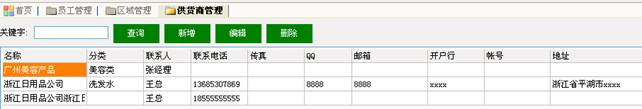 对于商品的供货商进行登录管理,可以记录查询每一个供货商的商品往来情况。